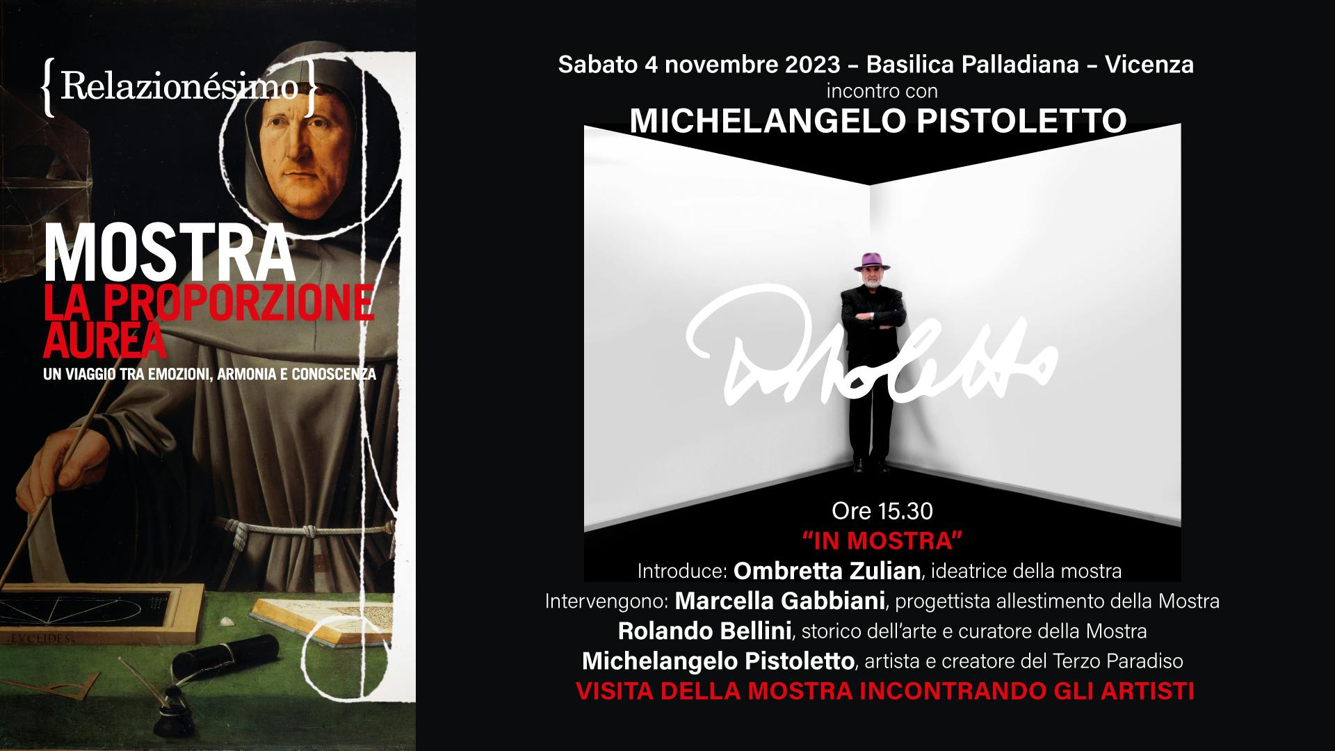 “In mostra”: Michelangelo Pistoletto e altri artisti della Mostra “La proporzione aurea” incontrano i visitatori